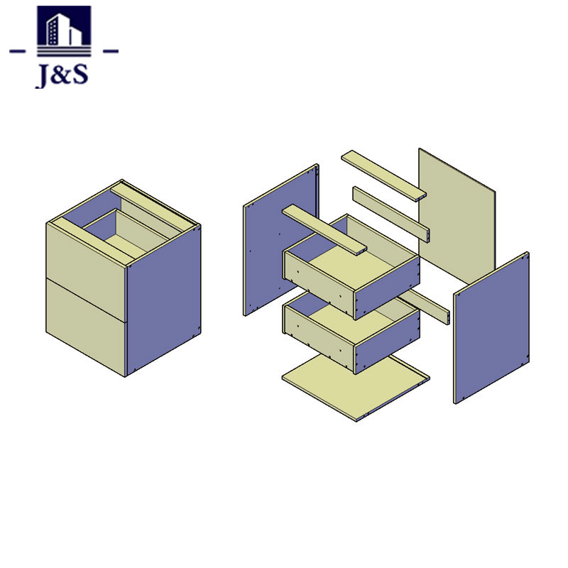 Ang flat pack na kusina ay ginagamit upang gawin sa pamamagitan ng particle board, supply sa isang kahon, pack na may mga bisagra, turnilyo, cam lock, dowel at iba pang nauugnay na hardware.